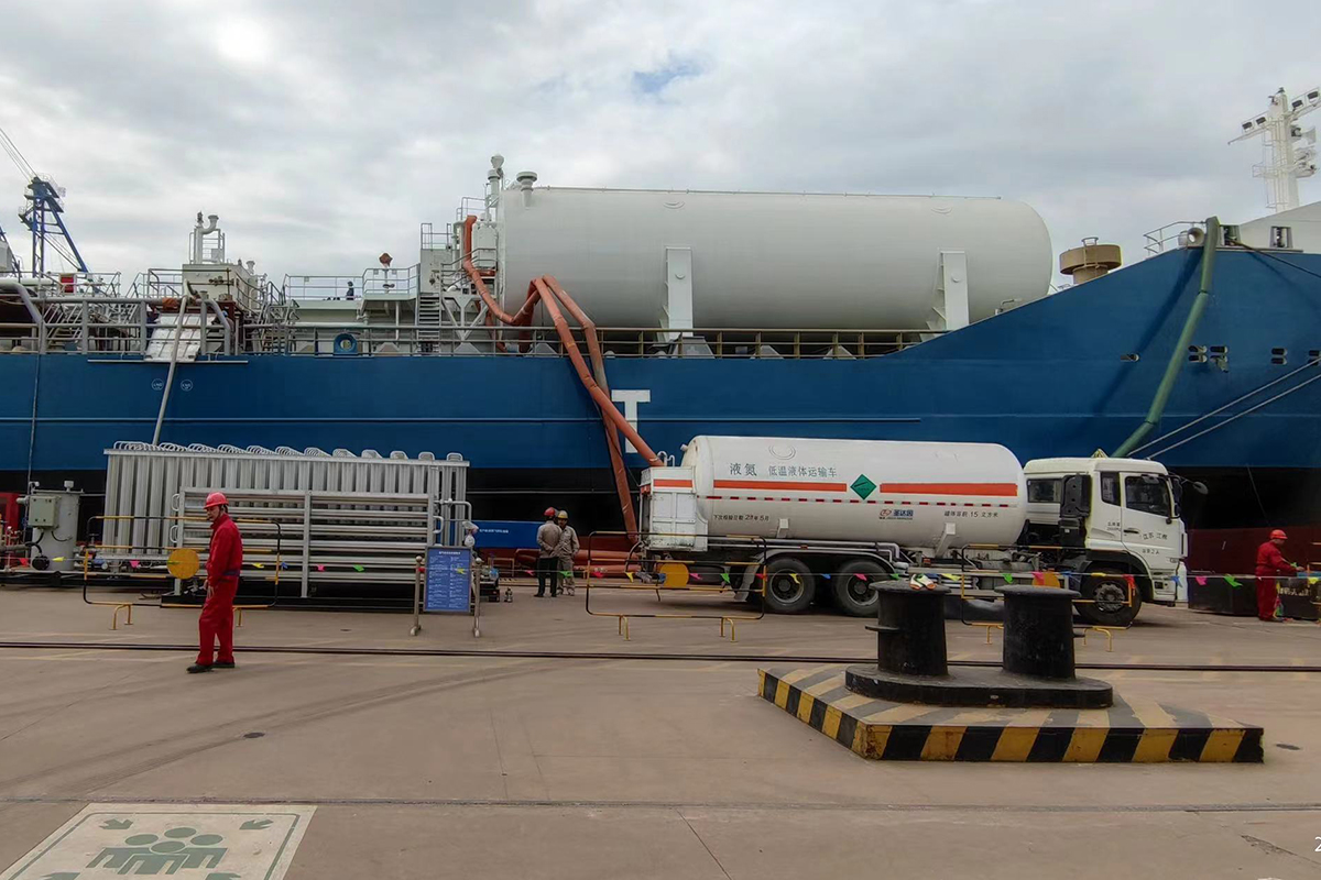 2,LNG雙燃料船的LNG 燃料艙預冷加注項目,提供氣體試驗及LNG燃料加注成套服務,包括(不限于)氣源(LNG&LN2)供應、現場氣試加注服務(技術服務、設備租賃、現場操作及回氣處理等服務)。